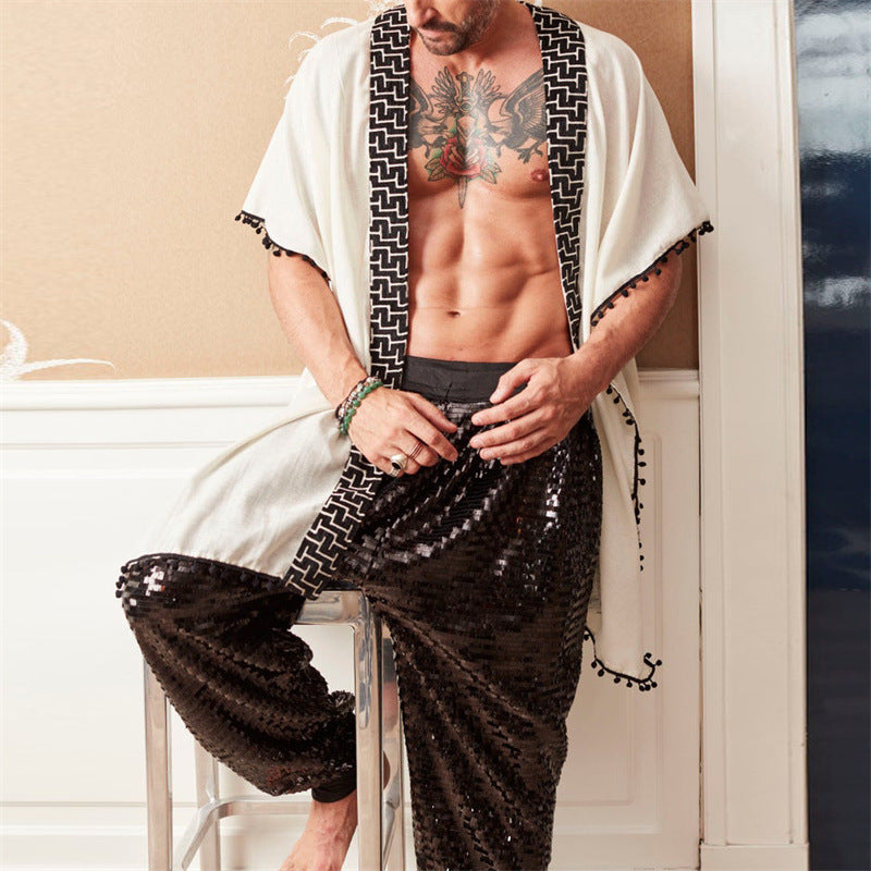 2022 Summer Cotton Linen Short Sleeve Shirt Solid Color Collarless Men's T-Shirt