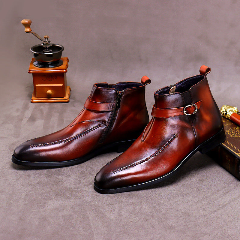 Buckle Fashion Short Boots British Large Size Business Lace-up Casual Leather Shoes